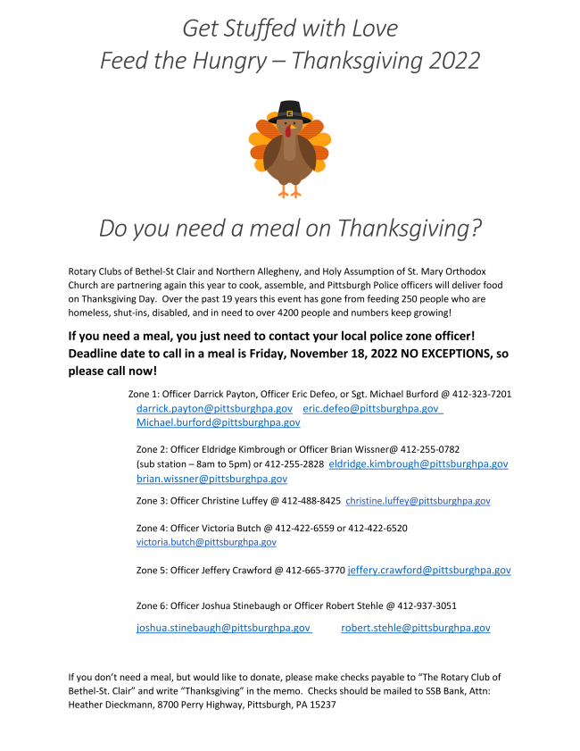 * Free Thanksgiving Meals from Pittsburgh Police