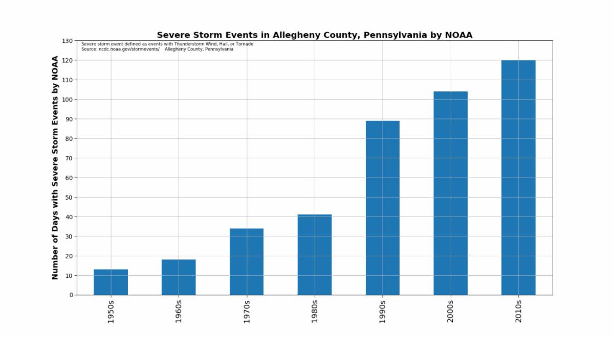 The number of severe rain events has increased significantly over the last decade in Pittsburgh, with more severe rainstorms from 2010-2018 than the previous 40 years combined. With climate change and the increase in intense storms, this will only get worse. We can’t stop the rain, but we can use innovative solutions to absorb, capture, and slow the flow of rainwater before it enters our overburdened sewer system.
