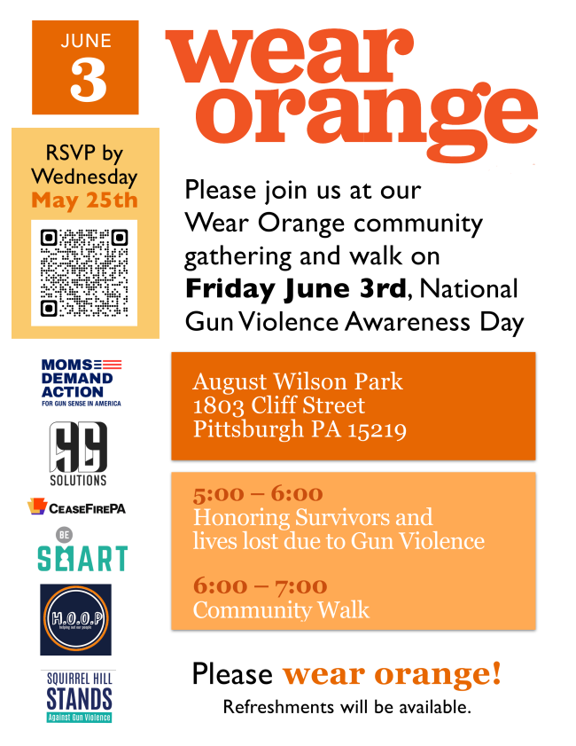 South Pittsburgh Coalition for Peace is home of the South Pittsburgh Peacemakers, a street outreach team which is available to prevent violence and intervene in situations which could lead to violence. They also offer educational workshops on violence prevention and community responses to violence. Two of their initiatives are described below.