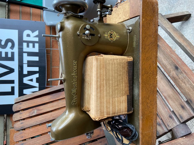 Free-Westinghouse sewing machine, c. 1940s or 50s? Unused for many years but worked well when last used. With handled lid to make it portable (though still heavy!) and box of attachments. On the porch at 1130 De Victor Place today, on the curb tomorrow for Monday trash pickup. Sent from my iPhone