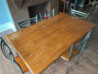 Hello neighbors, Selling a dining room table (with 5 chairs) and a sofa if anyone is interested. They both have some cosmetic wear and tear, but are still great pieces. See photos attached. Asking $50 for the dining room table and chairs Asking $30 for the sofa Pick up on Stanton Avenue and Sheridan Avenue. Email me if you have any questions. Thank you! Melissa