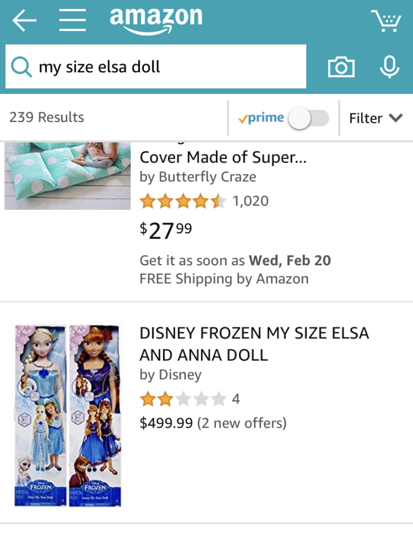Hi, My daughter has outgrown her princess obsession and moved on to horses and gymnastics. She’s trying to downsize her collection which includes My Size Anna and Elsa dolls. Both are in good condition except they are missing the flowers from their hair and Elsa’s dress has seen better days. They are going for quite a bit on Amazon new so we are asking for a reasonable offer. See photos below. Also, she has a 12”x 36” print of Anna and Elsa and some other smaller dolls pictured below. She is willing to let go of the smaller dolls for free. Thanks! Susan These are the ones we have. Below are new dolls on Amazon. Sent from my iPhone