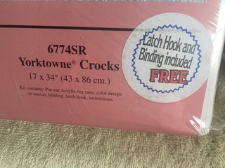 Yorktowne Crocks latch hook kit and binding. Never opened, still sealed in original plastic.