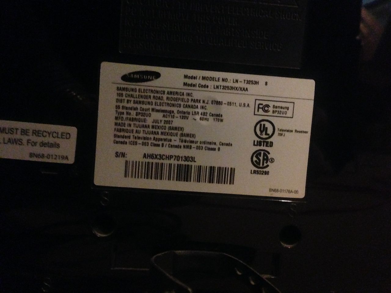 Great condition TV Samsung LNT3253H 32-Inch LCD HDTV. No dead pixels. $200 Email cyreynolds@gmail.com if interested. HDMI:3 R/F in:1 Component (Y/Pb/Pr): 2 S-Video input: 2(1 side/1 rear) A/V input: 2(1 side/1 rear) PC input: 1 USB 2.0:1 Headphone jack: 1 Same model as for sale here for $220: http://www.amazon.com/Samsung-LNT3253H-32-Inch-LCD-HDTV/dp/B000N50S3Q http://pittsburgh.craigslist.org/ele/4256831677.html cyreynolds@gmail.com | 412.253.4276