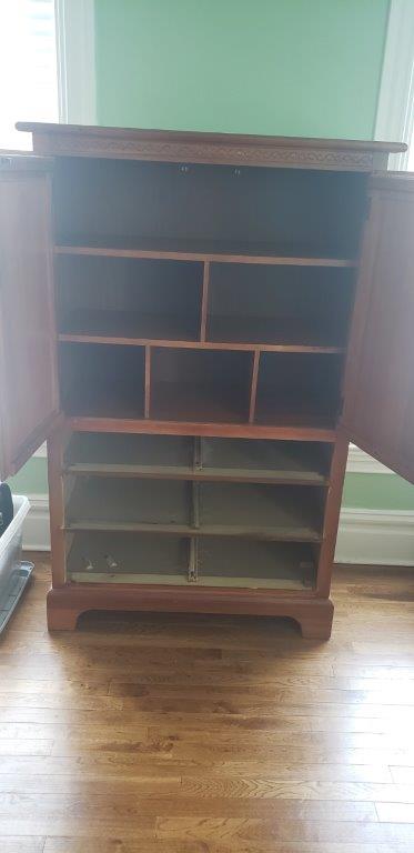 3 Drawer Armoire 2 of the drawers are loose when pulling them out but do close properly $30.00 Please email jaisvolpe@verizon.net<mailto:jaisvolpe@verizon.net> if interested Curbside pickup - big SUV or truck needed very heavy