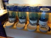 Friend has Automatic Pet Feeders for sale. Three large and one small. Never been used. (see details and link below) Large is $100. Small for $75. http://www.amazon.com/ERGO-2000GL-PS-Auto-Feeder-Large/dp/B005VVOLDA/ref=sr_1_7?ie=UTF8&qid=1361136303&sr=8-7&keywords=ergo+pet+feeder Please contact colleen_coll@hotmail.com. Automatic petfeeder Watch Video Autopetfeeder feeds your pet a predetermined quantity of dry food at convenient prescribed times giving you a healthy pet. This feeder offers pet owners with busy schedules as also elderly and differently abled people the opportunity to provide all the necessary nutritional needs to their pets. It is suitable for all types of pets. Here is our electrically operated automatic pet feeder to take good care of your pets even those with diabetes or eating disorders. Small with a capacity of 5 lbs suitable for pets weighing less than 15 lbs, Large with a capacity of 20 lbs suitable for pets weighing above 40 lbs. Autopetfeeder Features : Our Automatic pet feeder works for all types and sizes of pets such as dogs, ferrets, pigs, deer etc. The product is patented, UL and CUL approved Veterinarian recommended for diabetic pets Our feeder has a compact and pleasing design Our Automatic pet feeder works for all types of pets Airtight cover on the storage container keeps the food fresh The small and medium feeder has a removable tube style auger cover Polypropylene high graded plastic is strong and dishwasher resistant It comes in 3 sizes – small (5 lbs), medium (10lbs) and large (20 lbs) It’s compact and portable and can be accommodated anywhere in your home or office The clear storage containers on feeders enable visibility from all angles and far distances The large opening in the food store bin of the feeders enable easy restocking of pet food The precise quantity of food is supplied using a high torque 110 VAC synchronous motor A food agitator is included in large and medium feeders to prevent food from becoming stale. A safety interlock switch and safety baskets disable the feeder if the storage container is removed Our pet feeders have stainless steel protective sheathing on the cord to prevent pets from chewing the cord Metal over molded self-lubricating nylon auger prevents jamming and provides a smoother and quieter performance Unlike vertical augers in other feeders, this feeder has a horizontal auger system, providing precise control over feed rate The auto pet feeder comes with a detachable bowl for easy cleaning. Pet food does not have to be emptied from the storage container to clean the bowl All our feeders feature digital timers with battery backup for programs, the manual override switch, an 8 program settings per day and a daylight saving feature Autopetfeeder benefits : Our Automatic pet feeder works for all types and sizes of pets such as dogs, ferrets, pigs, deer etc. Helps to maintain your pet’s health You can feed you pet at appropriate time As the food is dispensed slowly this also prevents pets from bloating
