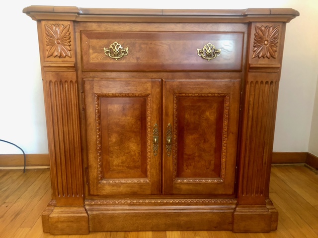 Selling classic wood style Server/Buffet with cutlery drawer and two cabinets. Top opens. L 38.5” W 18.5” D 20” H35 When open top is L 59” Ask price $300 Dark wood classic style Entry table with wall mirror. Has 3 small drawers. Table L 32” W 14 H 31 Mirror W 19 H 42 Ask price $150 Contact the following numbers to place an offer or additional info: Lucy 412-708 0302 or Wanda 412 626 9074
