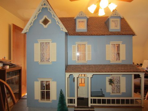 Patricia Wegman dollhouse by Real Good Toys. Completely finished vintage dollhouse. 3 stories. 9 1/2 rooms. Includes furniture, interior & exterior trim, wood shingles, wallpaper, wood floors, carpets, baseboards, crown molding, wood paneled doors, raised window shutters, electric lights, front porch w/steps. -- Fred Orner Email: fred.orner@gmail.com