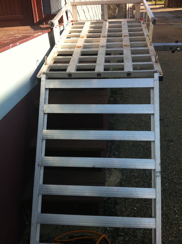 Car / Truck Hitch Cargo Carrier ($140) * Hitch Mount with built in ramp for a: -Wheelchair - Scooter - Snow Blower - Lawn Mowing - Landscaping Equipment - Camping Equipment - Flea market stuff * Aluminum Grid Frame * 500lb Capacity * 4 Tie Down anchor Rings * Fits 2" hitch receivers * Trailer Hitch Pin Included * Three Sided Guard Rail * Detachable fold up ramp. * Inside dimensions: 48-3/16"L X 27-1/2" W X 8-3/4" H. Alexandra 412.612.5016