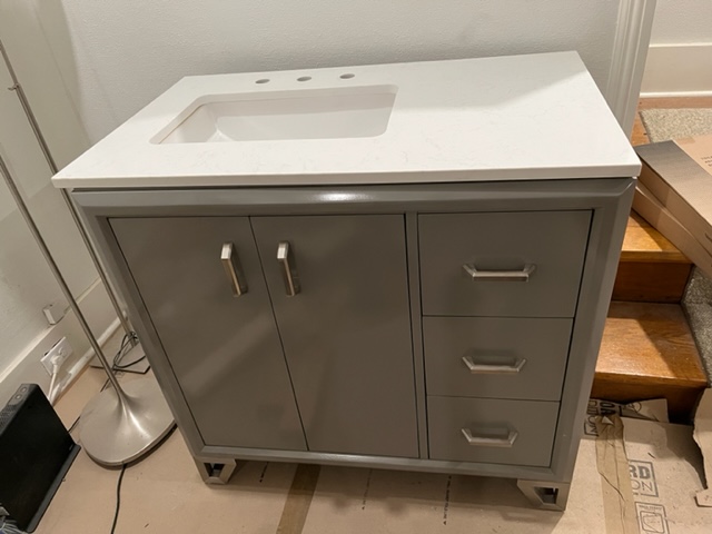 37" Bath Vanity and Mirror w/built in electrical - $1,100