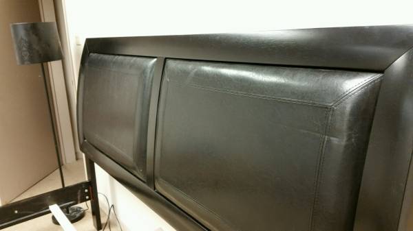 Black padded headboard and very sturdy frame. It doesn't fit in my new place or I would definitely keep it. I bought it for $900 a little over a year ago and I'm selling for $400 OBO. Email with any questions. Thanks : ) -- Kelly Dugan “Quiet minds cannot be perplexed or frightened, but go on in fortune or misfortune at their own private pace, like a clock during a thunderstorm.” *-*Robert Louis Stevenson
