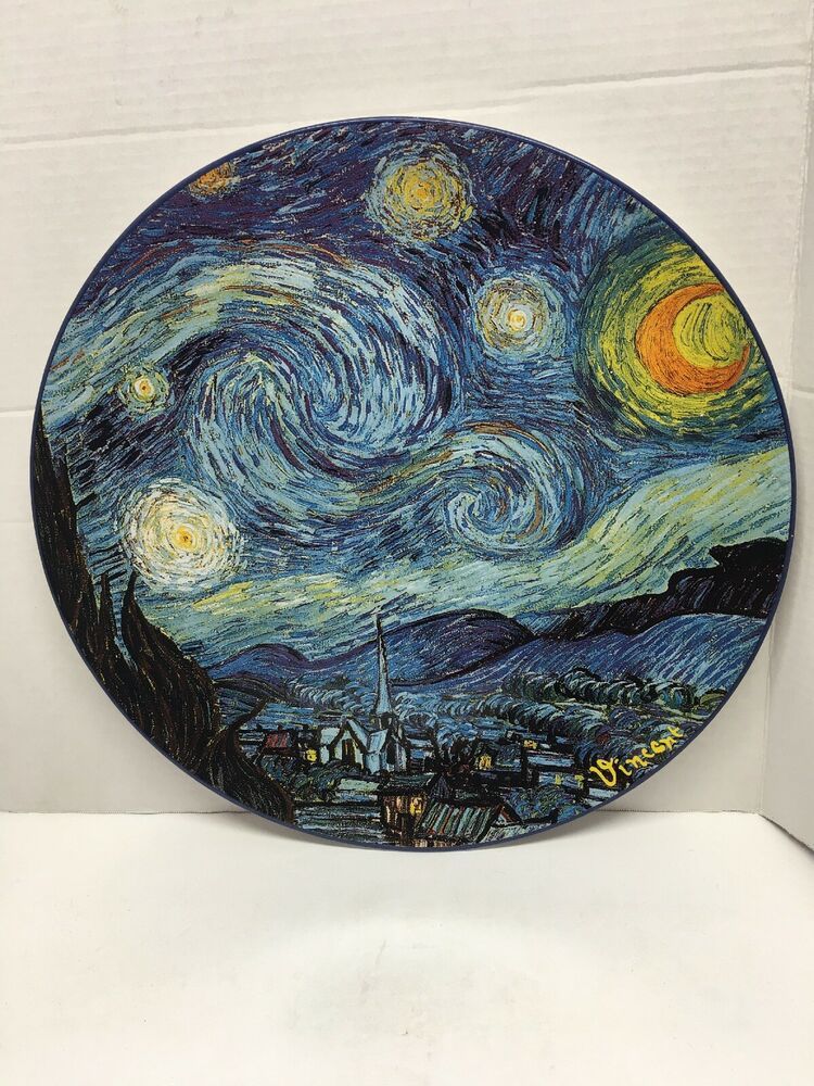 Brand New! Set of 4 Ceramic Dessert Dishes. Dishwasher and Microwave Safe. $48 Never used. Certified International Museum Masters. "Vincent" Starry Night scene. 8" diameter. Looking for a fun and easy way to shake up the look of your table? Now you can enjoy Starry Night on a daily basis! The perfect size for appetizers, desserts or salads. The Starry Night image is by the Dutch post-impressionist painter Vincent van Gogh. Painted in June 1889, it depicts the view from the east-facing window of his asylum room at Saint-Remy-de-Provence, just before sunrise, with the addition of an idealized village. It has been in the permanent collection of the Museum of Modern Art in New York City since 1941. It is regarded as among Van Gogh's finest works, and is one of the most recognized paintings in the history of Western culture. Please email, call, or text for more information and additional photos. Be well and safe! Caito 412.848.7208 [cid:2aadf6a7-1c31-43d8-8b40-7fa94a62e5a3]