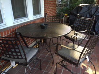 48" Round table and 4 chairs We are asking $200.00. It's in good condition with very small amounts of rust here and there. It has always been on a covered porch. There is a hole in the center of the table for an umbrella. Please let me know if you would like to come check it out. Sent from my iPhone