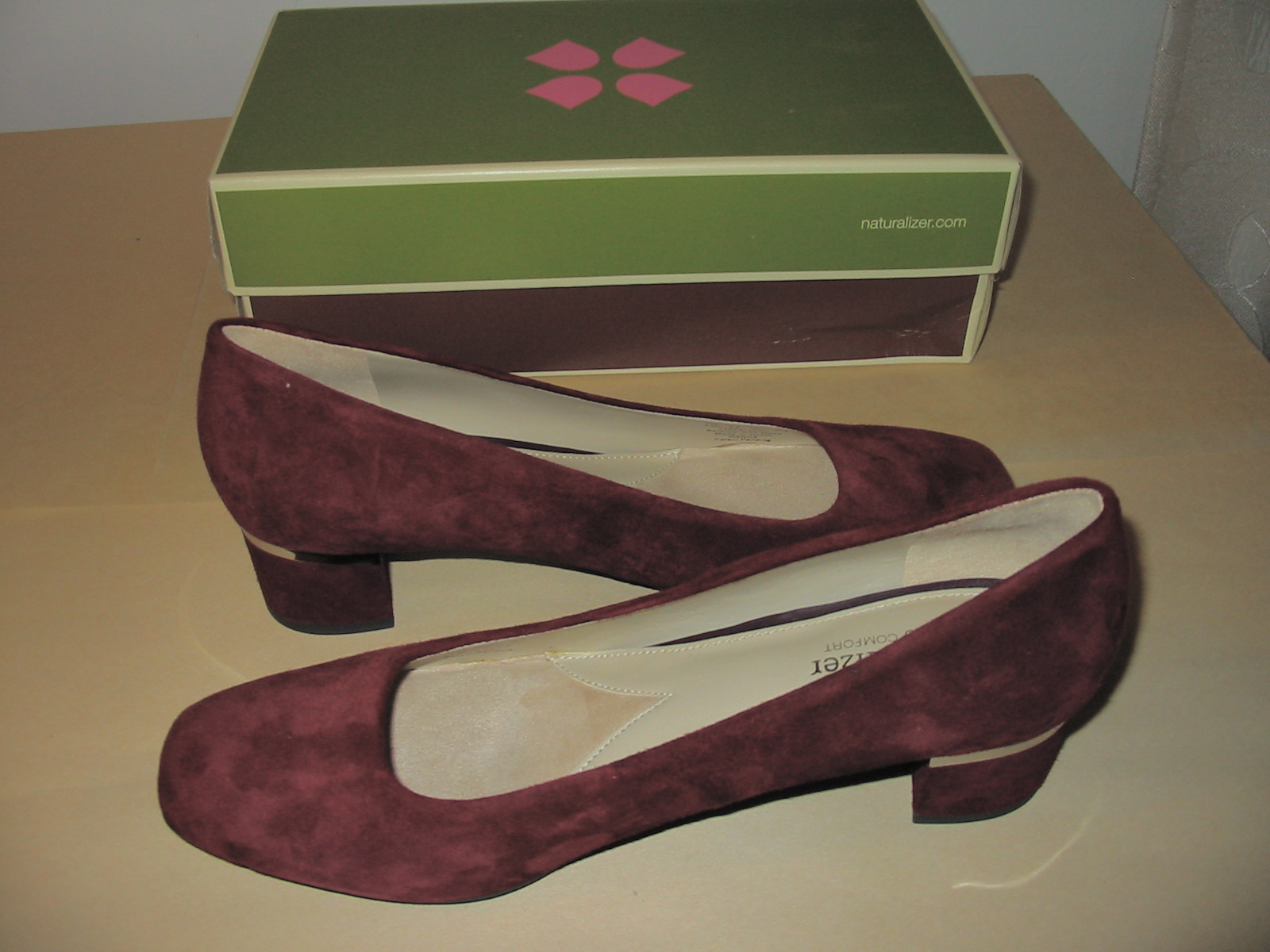 New in box, never worn, lovely purple (wine) suede color with metallic silver band around tops of heels. Style is called Wanda. $30 janet jai 412-661-8147