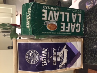 1 vacuum-sealed bag of ground espresso & 1 bag of EECM beans that were not my taste. On my porch at 5541 Beverly Place, pick up today (don't ask me to hold it for you please) Jana H. Finder