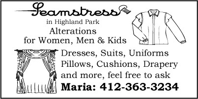 Seamstress available in Highland Park Alterations for Women, Men & Kids Almost anything from Shirts, Pants, Suits, Dresses, and Uniforms to upholstery like Furniture Slip Covers, Drapery, Cushions and Pillows Feel free to call, please leave a message on answering machine located on Sheridan Ave, can pickup and drop off if needed Call Maria: 412-363-3234