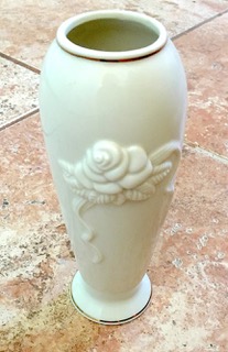 3) Lenox Rosebud Collection Vase ($15) This vintage Lenox Rosebud Collection bud vase is made of ivory porcelain. 24K gold trim around the top and base, and the gold Lenox trademark stamped on the bottom. Overall height is 7 3/8”. Excellent condition with no chips, cracks, or defects.