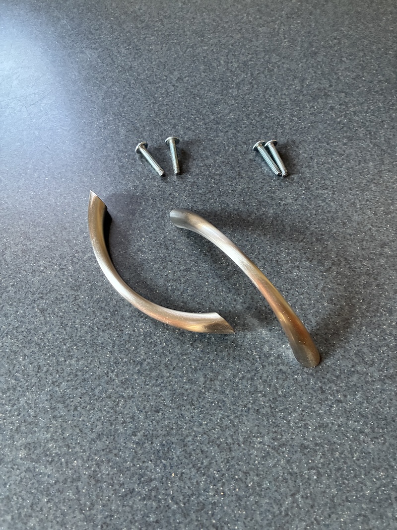 41 brushed nickel arch handles with screws, 3 3/4 " width Porch pick up: 6016 Bryant Street [image: IMG_1007.JPG]