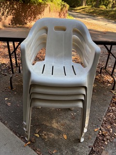 White Plastic Stacking Arm Chairs for indoors or outdoors; weather resistant; good condition. They’ve been in my garage and need to be washed. $20 for all four. Driveway pickup upper Aspinwall. Have a wonderful day! Deborah