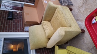 Neighbors, much-loved but perfectly good arm chair up for grabs. Fabric resists stains well. It is on our front porch (under a white mattress liner to protect it), which is perched above a quintessentially Pittsburgh flight of stairs. 6351 Glenview Place is the address. Please don't take any of the other stuff off the porch, unless the huge empty box appeals to you. Sent from my iPhone