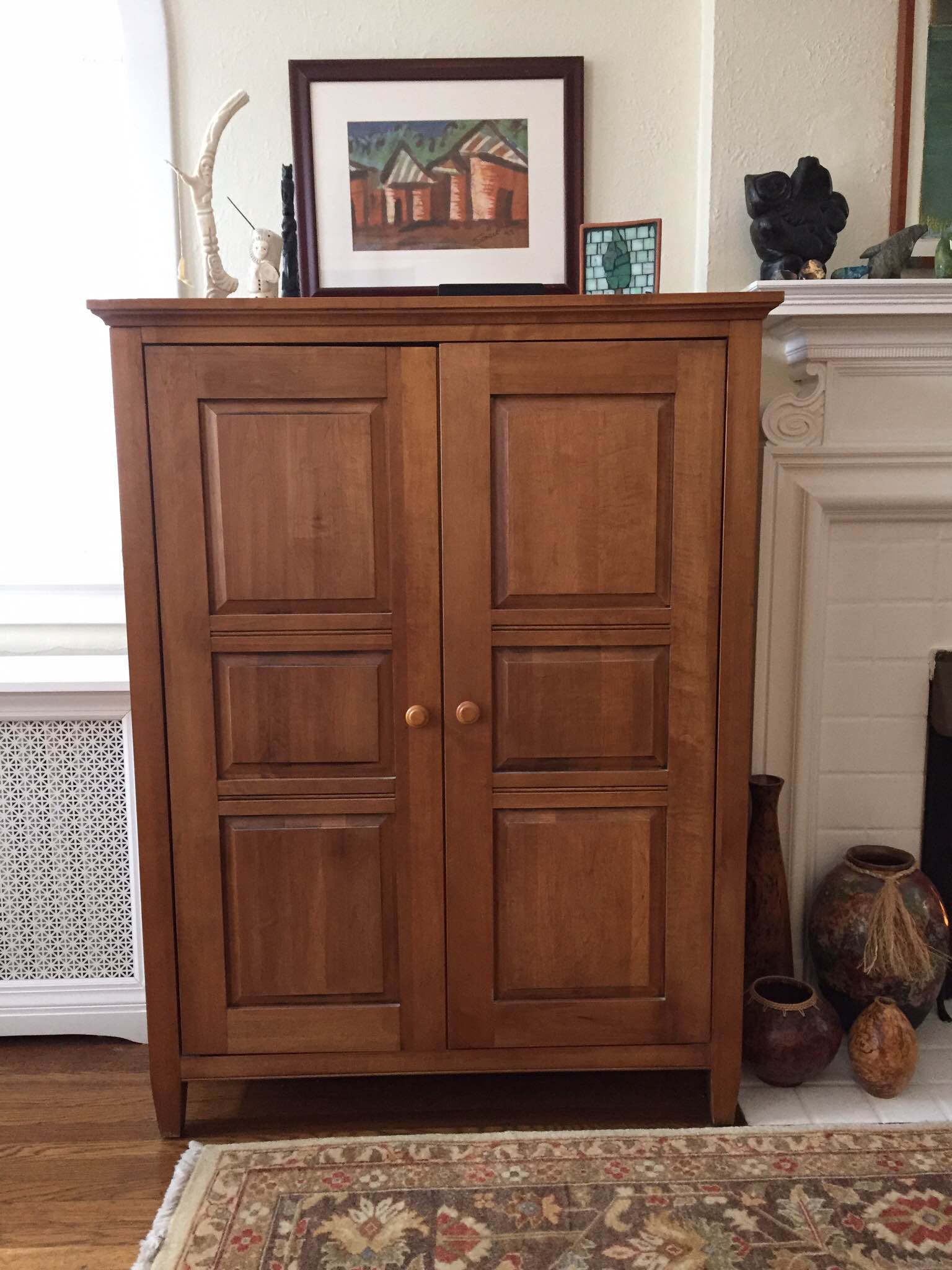We are selling an Ethan Allen TV cabinet, like new. It has cabinet doors that retract, a storage drawer and has a beautiful finish. $200 or best offer. Available to be picked up anytime.