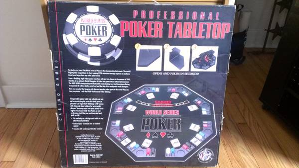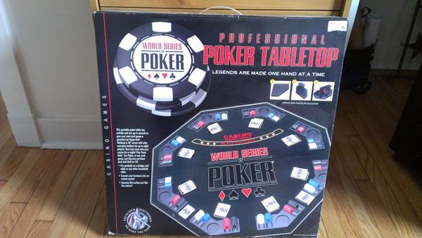 I have a brand new (unopened) WSOP Professional Poker Tabletop. It fits perfectly on a bridge card table or any other household table. Manufactured by Excalibur. The Table Top is 48" across with chip and glass holders for 8 players. Email me at brycepetit@gmail.com if interested. [image: Inline image 2][image: Inline image 1]
