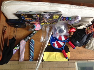 Miscellaneous items: purses, belt, black sleeveless dress size small, clip on boys' ties, paddle game (needs a ball), kids & adult magazines, nail polish (blue, green, purple, brownish), kids portable DVD player, airplane neck pillows, glow necklaces, 2 kids baseball caps, glass vase, handmade bumblebee costume. Not all items are pictured. 5541 Beverly Place. Please don't take my furniture. Stuff must be gone by Thursday afternoon so hurry down! Ignore barking dogs.