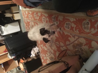 In the yard. 100% wool, 6x9, dog not included! Please take it before it gets ruined. It needs vacuumed (see photo of dog), but otherwise a great rug. Thanks! - - - Denise Caruso denisecaruso@mac.com +1 415 730-3562