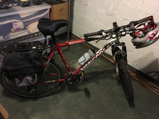 Mint condition (no rust) Mongoose Revolution Aluminum 6061 mountain bike (retails for $120.00): • Size 19" (I am 5'9" and this bike is the perfect height for me, without adjustments) • 21 speed gears, with gear changed tachometer • Vortex front suspension • All Shimano brakes • Comes with owner's manual Bike upgrades/extra equipment included in price (estimated $160.00 value): • Sunlite panniers, single style, two panniers (retail for $40.00 each on most sites) • Rear mounted bike rack, suggested max load 55lbs/25kgs (retails for $20.00 on most sites) • NiteRider Lightning Bug and Stinger multi-function head and tail lights (retails for $29.00/both at Walmart) • Unbranded steel key bicycle cable lock (retails for $3.00 on Amazon) • Rock N' Roll lubrication oil, 4oz (retails for $9.00 on Amazon) • Bell Vela Cycling Bicycle Helmet, 50-57cm (B194y), worn a few times, no accidents (retails for $14.00 used) • Next saddle bike seat, 10" vinyl, brand new (retails for $5.00) • Water bottle