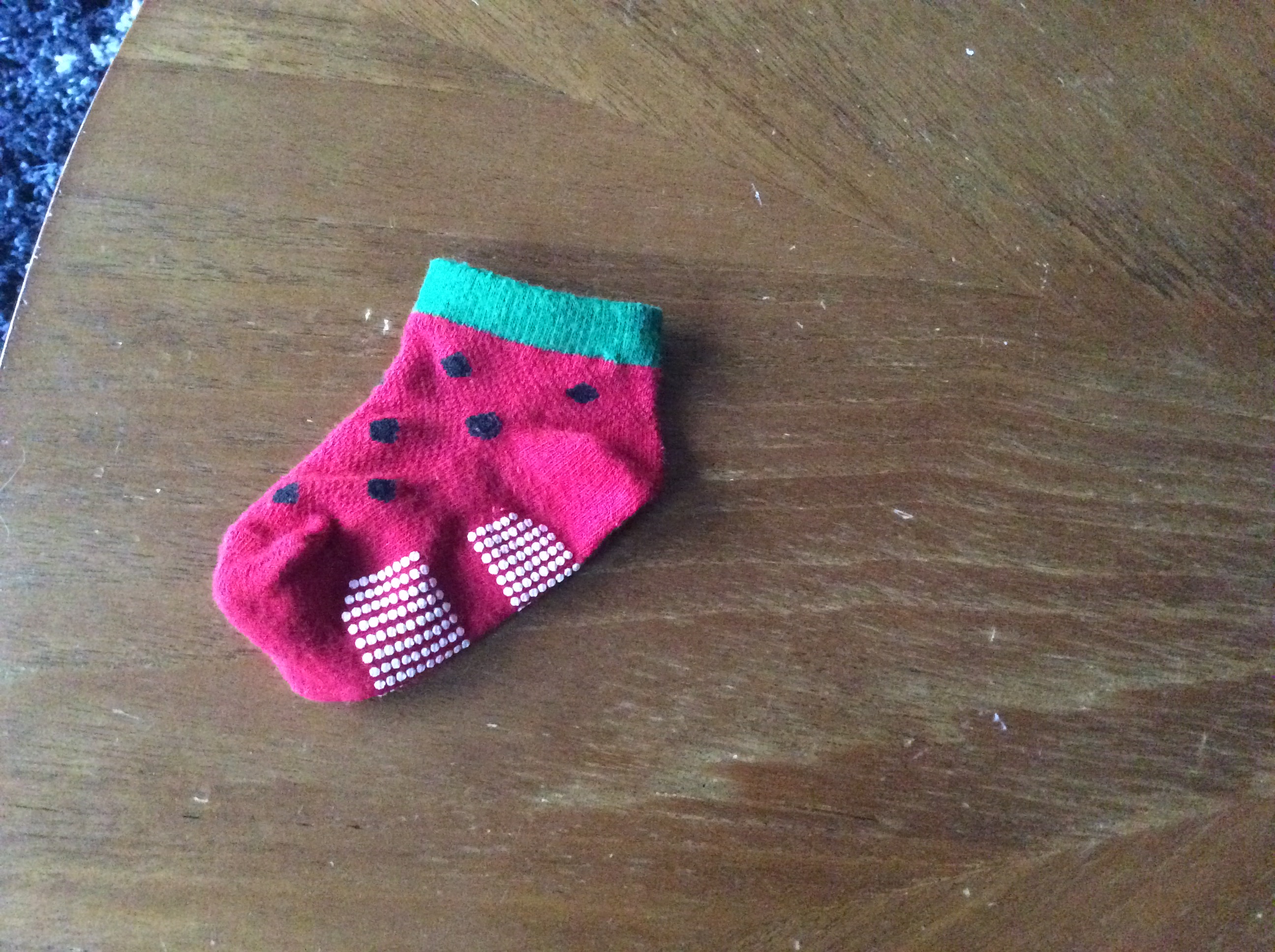 Hi HPers, On a long walk around the neighborhood, we lost the mate to this cute little watermelon sock (see attached) It was a gift and part of an outfit for our daughter (10 months), so if someone happens to come across it, it would be greatly appreciated if you’d let us know! Best, Brendan and Fumi Sent from my iPad