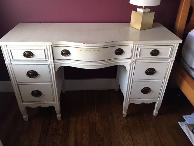 White Desk, multiple drawers. Some paint blemishes on desktop - could probably use a new coat of paint. Pictures attached. Call Natalie 330-718-3114 [image: Inline image 1]