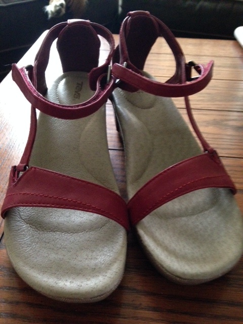 I bought these dressy red Tevas last fall, and they're not quite my style. They've never been worn - $50 OBO. Selling for $90 on Zappos: http://m.zappos.com/teva-capri-wedge Contact me at Jenr.ruth@gmail.com Jen