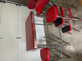 RETRO Chrome and Red Hightop Table with Chairs
