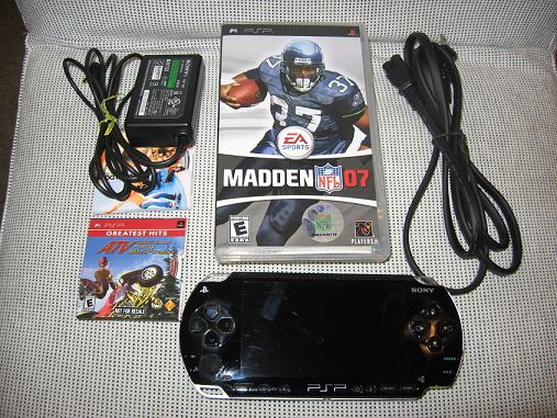 SONY PSP (Playstation Portable), 1 year old, hardly used (approx. 15 hrs) complete with Battery, AC adapter/charger, 1GB memory stick, and user manual. 2 games: "Madden NFL '07", "ATV Offroad Fury" Ready to play! $110 only Call 412-362-5628 Axel