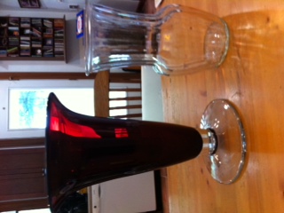 2 glass vases for $5.00, or $3.00 each. One is dark red and goblet shaped, 11.5 in. The other is clear and fluted, 9.5 in. Email me if interested. Jana
