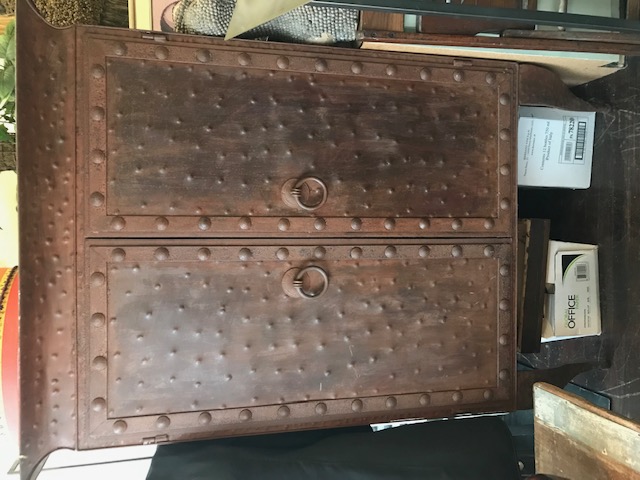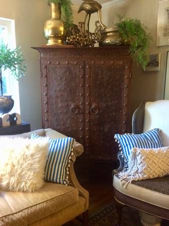 Hello Folks--- Can your home handle this? It's is a real statement piece! Previously owned by former Steeler Coach Bill Cowher, I bought it at an estate sale in 2007. I put these in consignment but realized I should have posted them here first! This is the second piece from my home inventory. A phenomenal rustic armoire-style with large nail heads and knockers. Flat top for staging. Queen Anne legs--a real surprise for the look. Could be an foyer piece, great in a large livingroom or even retro fitted as a bar Size 44" W x 66"H x 27" D. You must transport. Highland Park area. Email for specifics. $3500