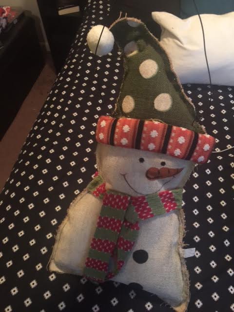 Fabric with a black wire hanger. Originally bought at Kirklands.