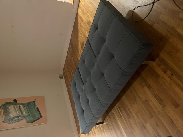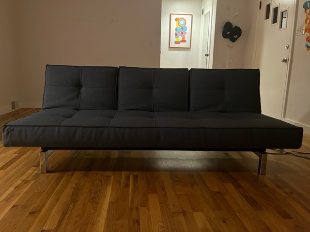 Room & Board Eden sleeper sofa in slate blue with chrome base. Sofa was in a guest room and barely used. Couldn’t fit it in our moving truck! Excellent condition from a non-smoking, no pet home. No visible stains or scratches. Three back cushions recline independently to two different pitches or can lay flat for a full-sized bed. See it in action here: https://m.youtube.com/watch?v=TTxIF22phas Overall Dimensions: Width: 82 inches, Height: 30 inches, Depth: 37 inches Retailed for $1000, asking $500! Sent from my iPhone