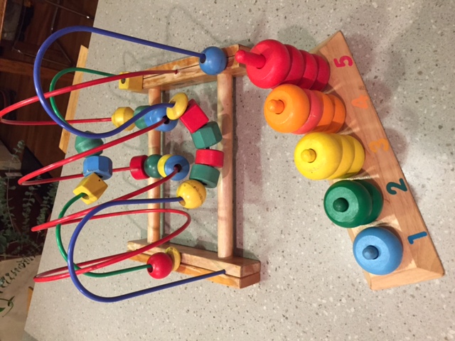 Well used but wood so a lot of life left yet. Counting toy has missing red piece but I substituted with a dark orange from another toy :) Sent from my iPhone
