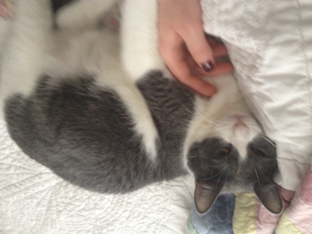 Kaiser is a shy but sweet cat I am fostering for animal friends. She was rescued from a neglectful home and has been with me about a year. She has made a lot of progress and is looking for a patient, loving family. The adoption would be through animal friends. Please contact me for more information. Thanks. Sent from my iPhone