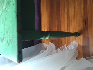 41" L x 26" W x 28" H Original green paint w/exposed patches of oak $100