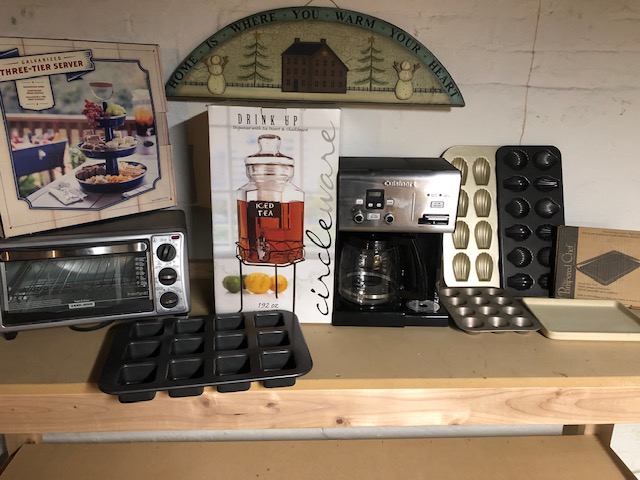 Coffee maker - used 2x Toaster oven - used less than 5 x Iced Tea server - used 8 x Madeleines forms - used 10 x Square brownies form - used 2x Pampered Chef fudge frame - not used and spotless Christmas frame - used 6 years - FREE 3 Tired stand - used once First offers will be accepted