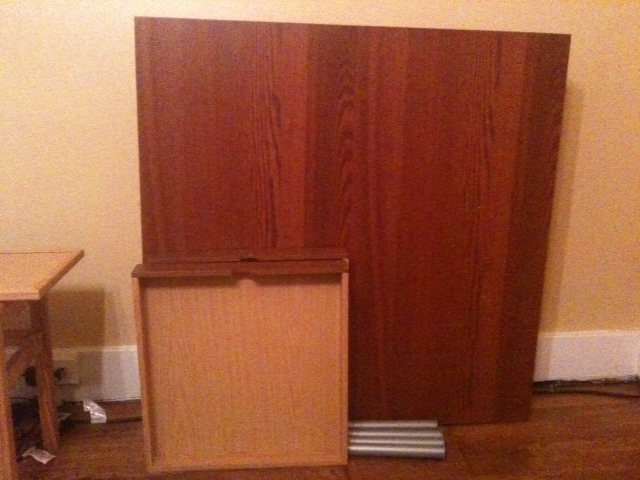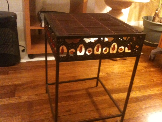 Rectangular coffee table. $ 10 Square, low coffee table with two drawers. $15 Small metal frame table with orange glass beads. $10 All items are available for pick up today. Tom 412-512-6066