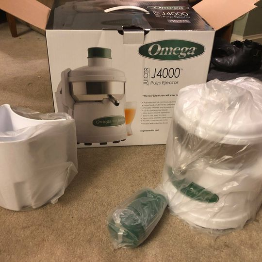 Omega 400 High Speed Pulp Ejection Juicer - Never used and still in original box and packaging. Full 15 year manufacturer's warranty. It's $194 on Amazon, $179 from Omega, Today I'm listing for $115. I can tell you that I have another Omega and they are great juicers! The box was opened only so that I could take the photos, otherwise it is brand new. https://omegajuicers.com/collections/all-juicers/products/j4000-high-speed-p... I'm in HP and can arrange to meet outside, masked and distanced. Michele micheledelareza@gmail.com [image: image.png]