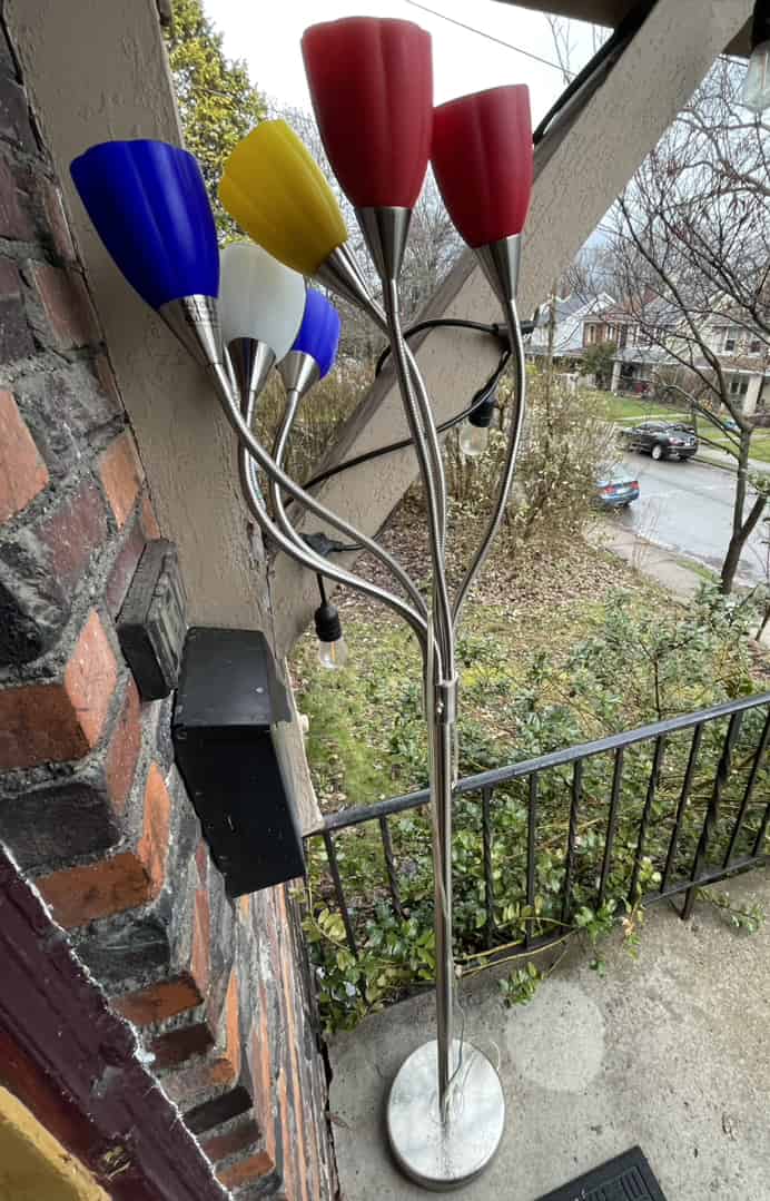 Free, colorful floor lamp including bulbs. On the porch at 1007 Winterton St.