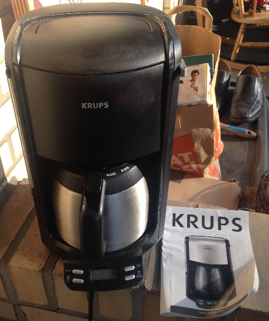 Free Krups coffee maker on front porch: 1020 Heths Avenue. Works fine to make coffee, but the timer no longer works. First comer takes. No emails, please. Thanks. [image: Inline image 2] -- "After silence, that which comes nearest to expressing the inexpressible is music." — Aldous Huxley<http://www.goodreads.com/author/show/3487.Aldous_Huxley>