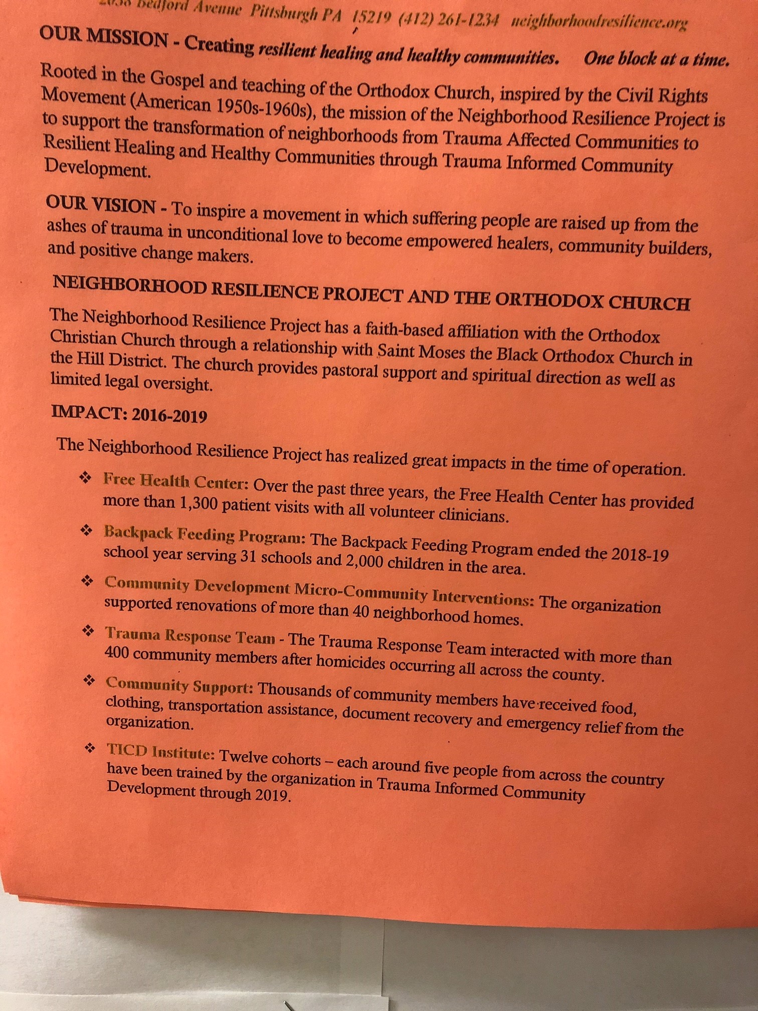 Hi there Neighbors - We have gotten only a few people expressing that they are donating this Thursday for the Food Pantry and Clothing Locker at NRP (FOCUS) this week, so am sending out this reminder. The Response to the Angel Tag/Senior Christmas Drive is going extremely well, and we wish to thanks to those that are participating in both !!! Please help us get items to those in need just 15 minutes from where you live here in our own City. As always, please contact me at the below contact information with any interest in Donating, or with any questions. Mike Michael Millet Nadler Past President and Board Member, Highland Park Community Council 5916 Callowhill Street Pittsburgh, PA 15206 (412) 363-3483, Fax: (412) 363-2925, e-mail: mike@divehards.com<mailto:mike@divehards.com> From: Michael Nadler Sent: Friday, November 06, 2020 8:31 AM To: neighborhood@highlandparkpa.com Subject: November NRP (Used to be FOCUS Pittsburgh) collection this coming Thursday, 12 NOV 2020, starting at 9:00 AM for Non-Perishable Food & Clothing Importance: High Dear Neighbors, First of all, we hope you and yours are safe and well !!! There have been a couple of drives to get supplies to NRP (used to be FOCUS) during the last two months, but we did not wish to take away from the efforts directly helping those within our own neighborhood, so have handled setting up meals, etc, there. They have had limited access to the public coming in one by one, so the needs have been a little less, but with Quarantine opening up, they are again expanding their availability to those in need. We are again letting our neighborhood know that we will be driving the neighborhood picking up for the monthly NRP Collection this coming Thursday, 12 NOV 2020. We will be around the neighborhood at 9:00 AM that morning, so we are looking for non-perishable food to restock their pantry & Clothing. THIS IS A DIFFERENT DRIVE THEN THE ANGEL TAGS/CHRISTMAS PRESENT COLLECTION E-MAIL FROM A COUPLE OF DAY AGO !!! If you have questions on that, please again contact me regarding that directly !!! Please note the attachment with their Mission Statement and Impact Programs. Please donate, as these are all needed and we are running our monthly pick-up from the neighborhood for Supplies for FOCUS, now Neighborhood Resilience Project !!! Mike and Brigette Nadler, are coordinating the Highland Park pick up. If you are inclined to help, leave the supplies on your front porch, then we will pick up and get your donations to FOCUS, now Neighborhood Resilience Project (NRP). So we are doing this again this coming Thursday, 12 NOV 2020. We will be around starting at 9:00 AM, and need to get the donations there by noon. Please DO NOT drop off here, as we do not have a way of storing donations. Just email us your actual address to: mike@divehards.com<mailto:mike@divehards.com>, to let us know what to expect to pick up (as well as, what not to take off your porches !!!), and we will get back to you. MAKE SURE that there is a Phone Number, so that we can reach you during collection times, should there be any questions. In advance, thank you for your consideration. Mike & Brigette Michael Millet Nadler Past President and Board Member, Highland Park Community Council Pittsburgh, PA 15206 (412) 363-3483, Fax: (412) 363-2925, e-mail: mike@divehards.com<mailto:mike@divehards.com>